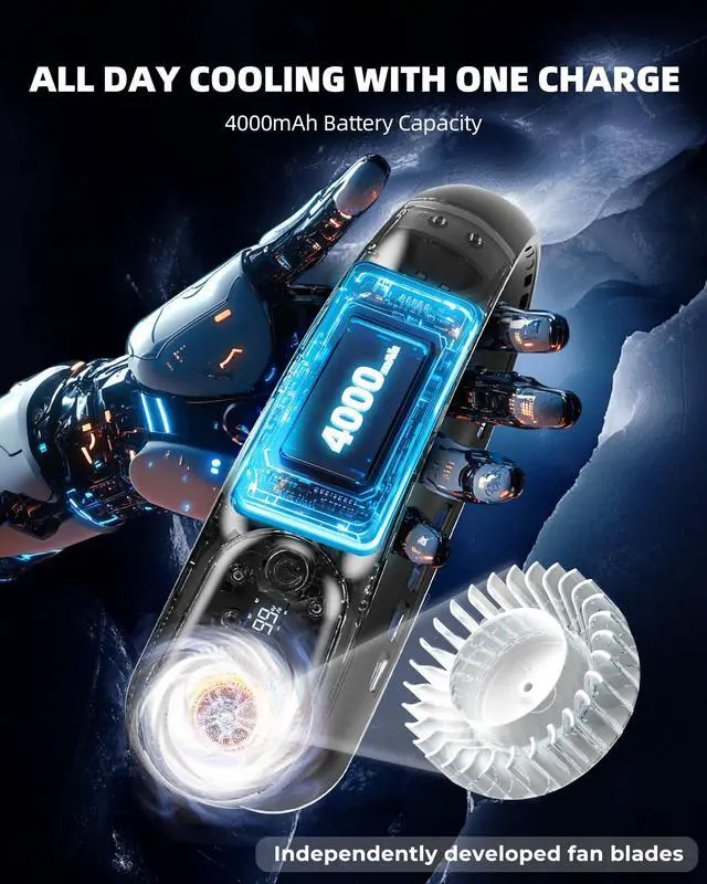 Neck Fan, Portable Personal Fan around Neck, 4000 mAh Battery Operated with LED Display, 3 Wind Speed, Fast Cooling, Ultra Quiet, USB Rechargeable Fan Men Women Outdoor Indoor