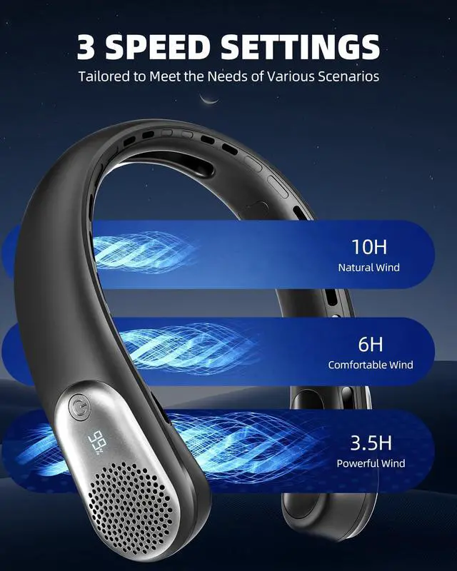 LED DISPLAY FOR CONVENIENCE: The neck fan features an LED display showing current wind speed and remaining battery, keeping you informed and in control. No need to worry about sudden shutdowns due to lack of power