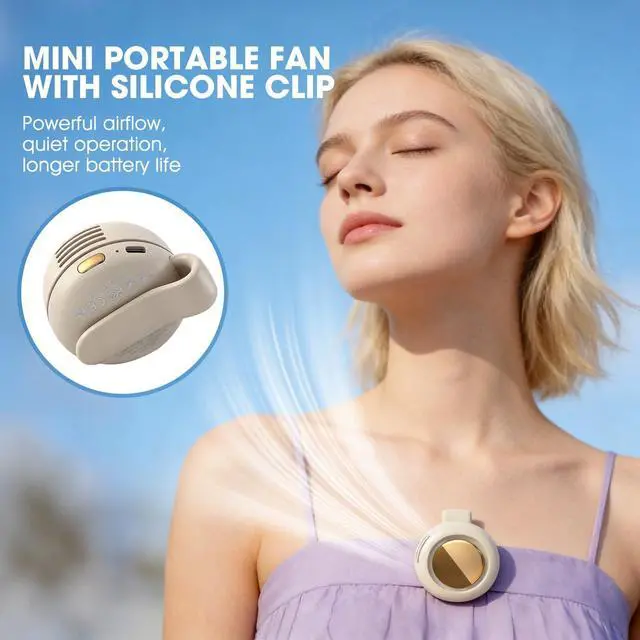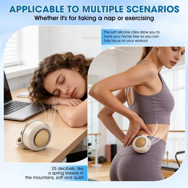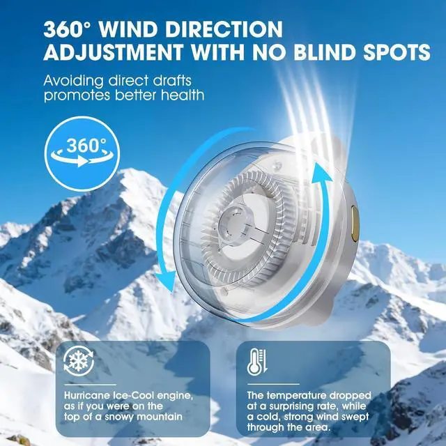 POWERFUL AND QUIET COOLING PERFORMANCE: Our upgraded small cyclone clip fan can provide 5100RPM airflow while maintaining silent operation (<25dB). You don't need to worry about being disturbed when using the Hands-Free Wearable Neck Fan