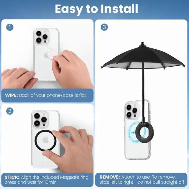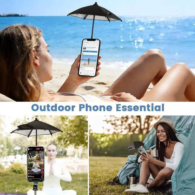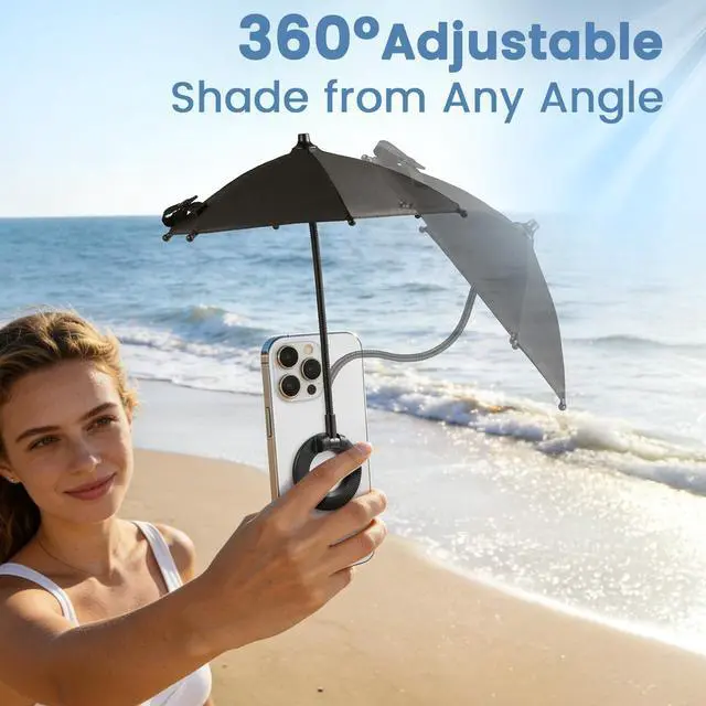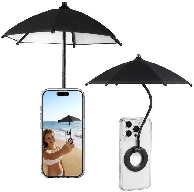 Magnetic Phone Umbrella, 2026 Upgrade Sun Shade | Mini Universal for Cell iPhone Android Kindle (Black)
