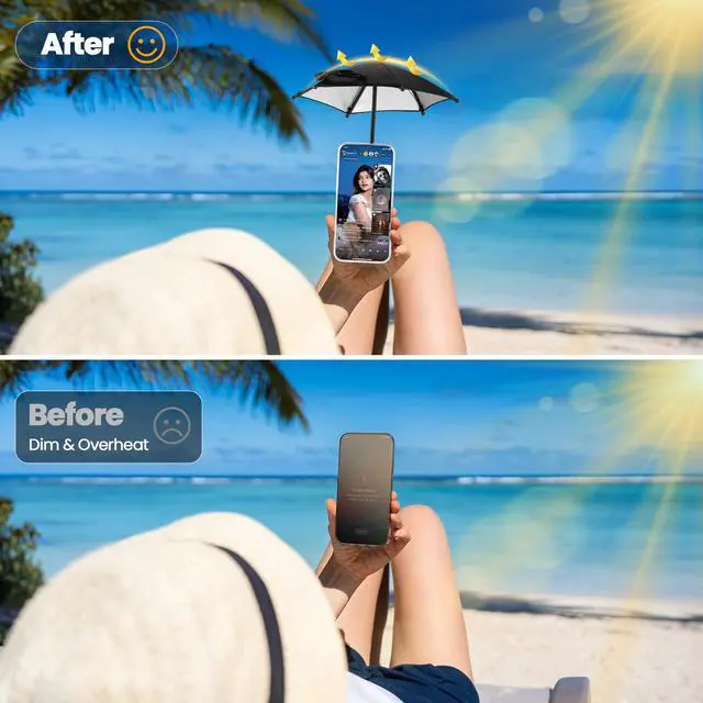 UPF 50+ Mini Umbrella: Silver-coated lining blocks up to 99% of UV rays, helping keep your phone cool and your screen clearly visible while reading, taking photos, or live streaming.