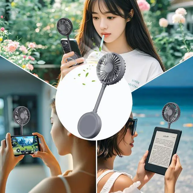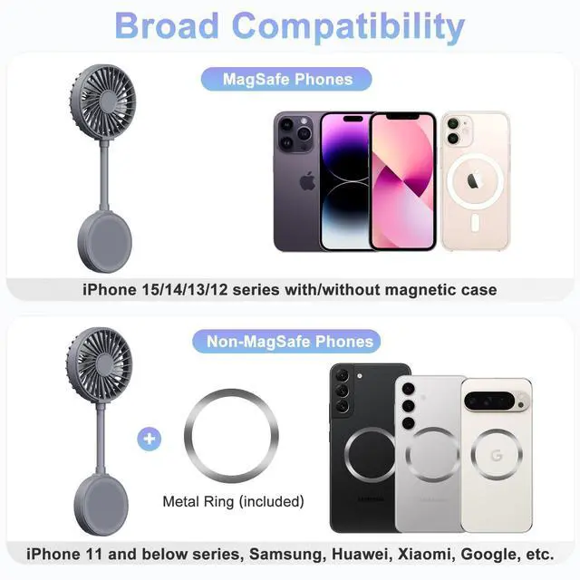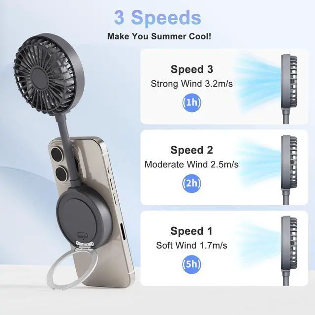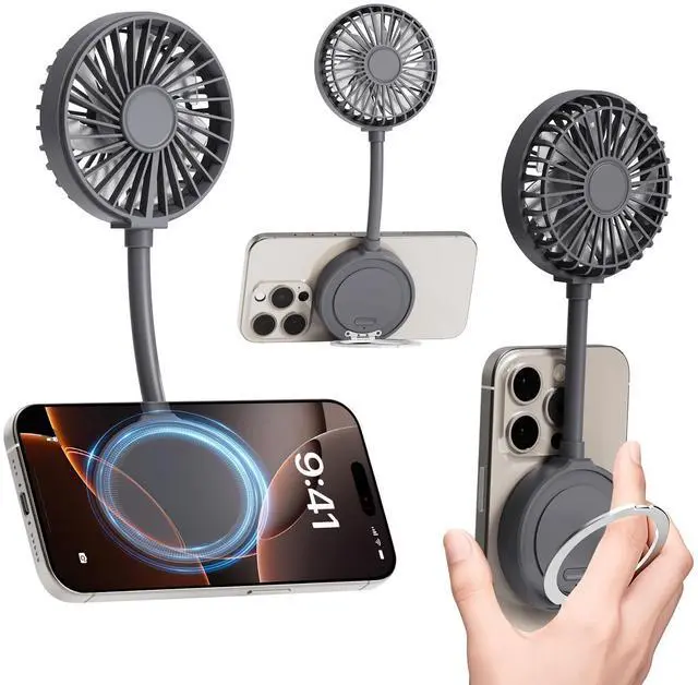 Beszeith Magnetic Phone Fan, Mini Personal Fan Rechargeable with Phone Ring.Small Desk Fan for iPhone 16/15/14/13 Pro Max,Mag-Safe Case& All phones, Portable Summer Outdoor Cell phone Fan Women(Gray)