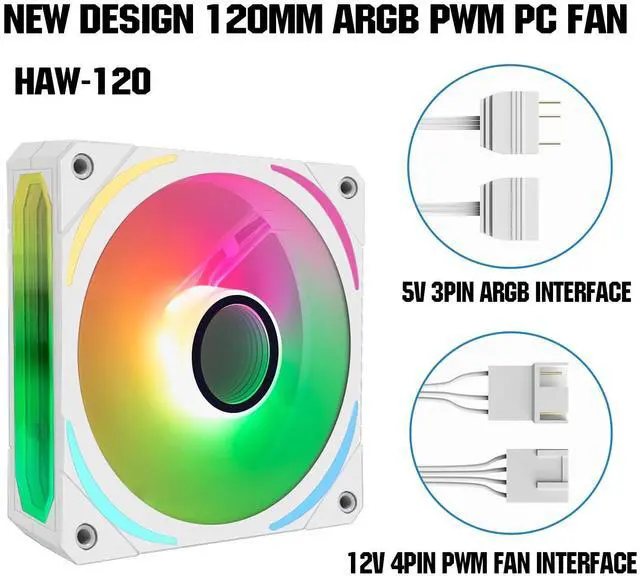 HAW-120 argb pwm fans have 5v 3pin argb interface and 12v 4pin pwm fan interface, they not only can connect motherboard, but also connect ARGB HUB controller.