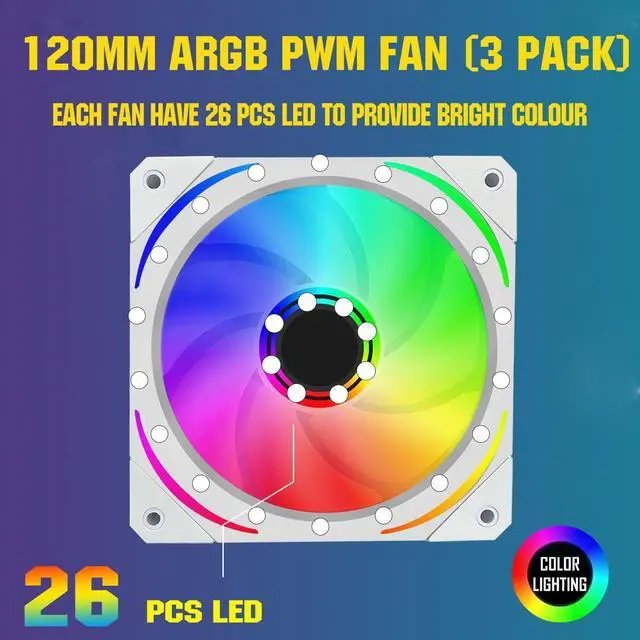 - This product contain 3 pcs argb pwm fan, 12 pcs 5*10mm screws and 12 pcs 6*32mm screws. Not include fan controller. Please check compatibility before purchasing.