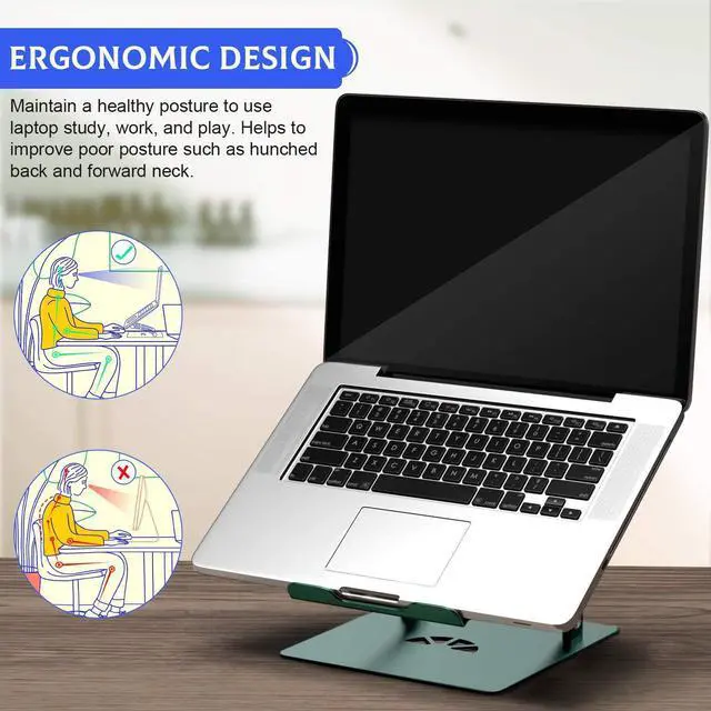 Ergonomic Adjustable Design: The laptop stand can elevate your laptop to a perfect sight level, let you to find the most comfortable angle, making typing more easier. It will relieve the stiffness of your back and neck.
