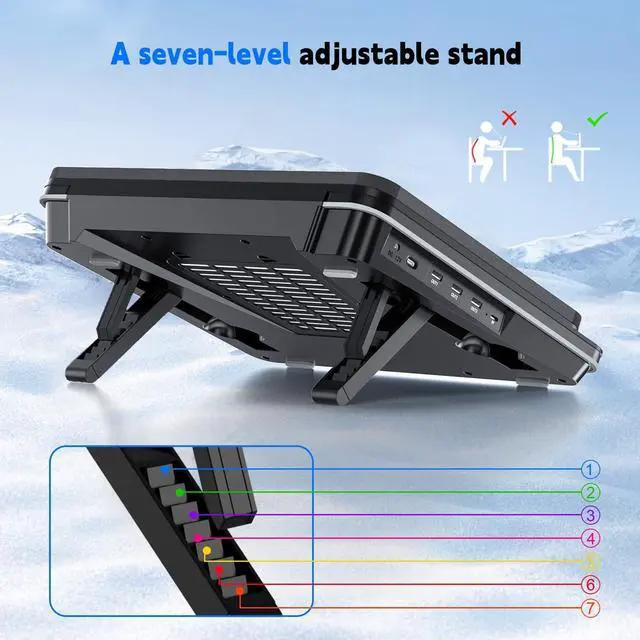 A perfect match:Industrial-grade turbofan+ combined sealed foam, creating a powerful cooling effect, and it is 360-degree undifferentiated cooling, no matter where the cooling hole of your laptop is, the same cooling effect can be obtained.