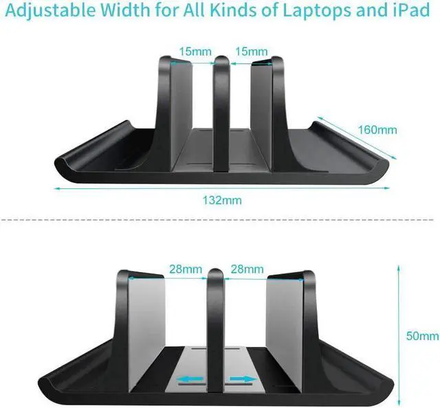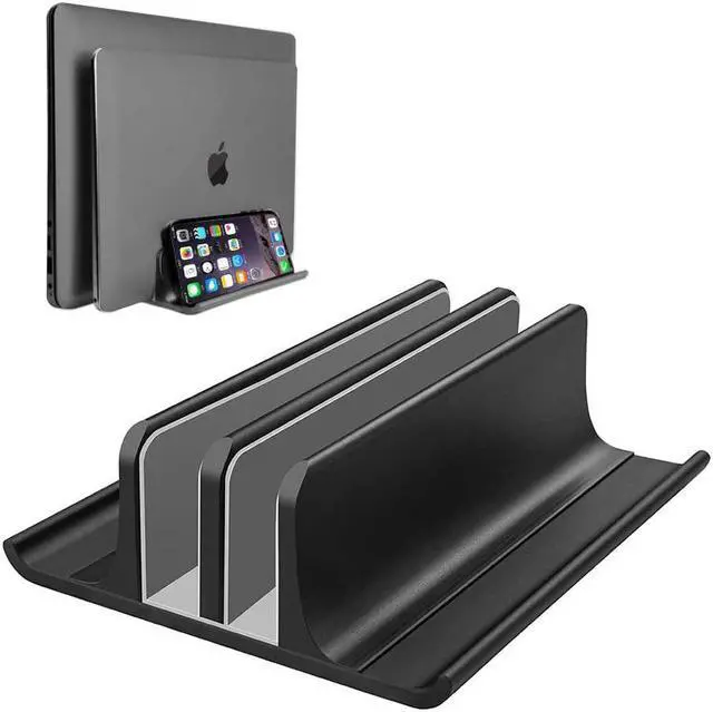 Dual slot design: Cradle up two laptops and phone ipad vertically at the same time. The laptop holder is great for space saving and building up a neat and organized space for desk.