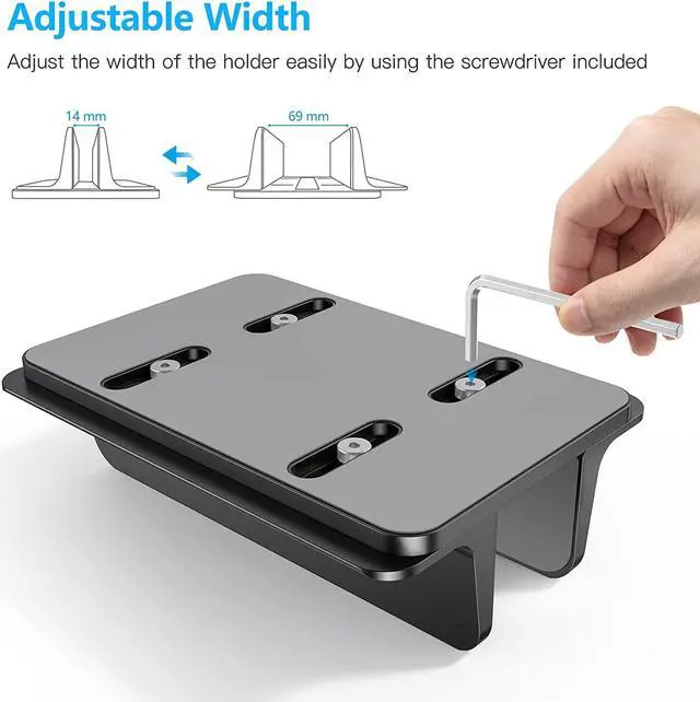 Adjustable Size - Its adjustable width enables compatibility with most laptop or notebook brands with thickness ranging between 0.55 in x 14mm to 2.71 in x 69mm.