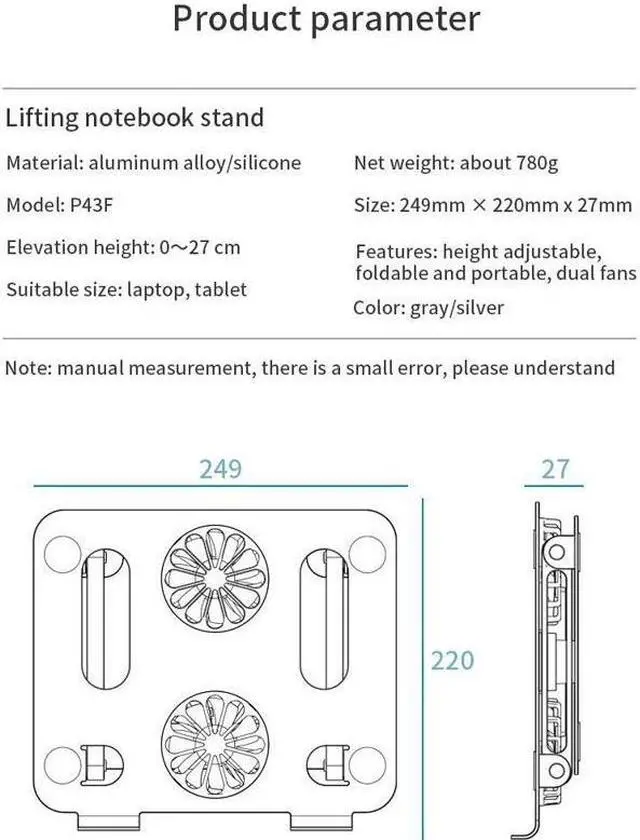 New Portable Laptop Holder Support Base Notebook Stand For Macbook Pro Lapdesk Computer Laptop Stand Fan Cooling Bracket Riser (P43F With FAN)