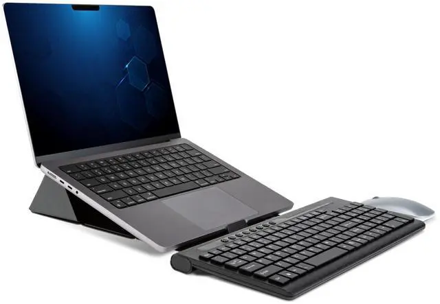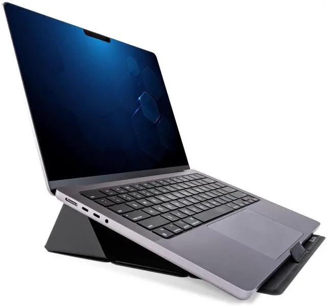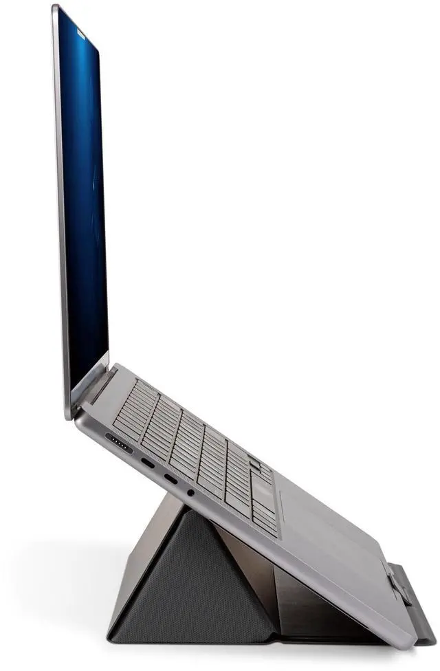 The Foldio Laptop and Tablet Stand offers dual-height ergonomic positioning in a travel-friendly size. Adjust your viewing angle and device height by simply folding the stand to the desired position. The stand features magnetic flaps for quick and easy setup and folds to a compact size for carrying in a bag or backpack.
