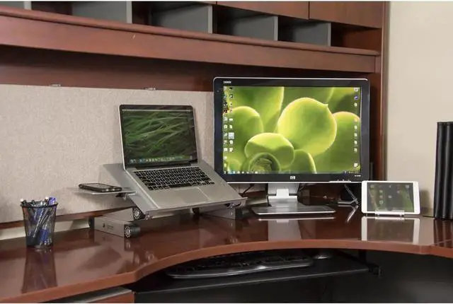 LAPTOP DESK STAND: this ergonomic laptop desk stand improves your posture by holding laptops in an ergonomically-correct position when sitting or standing at a desk