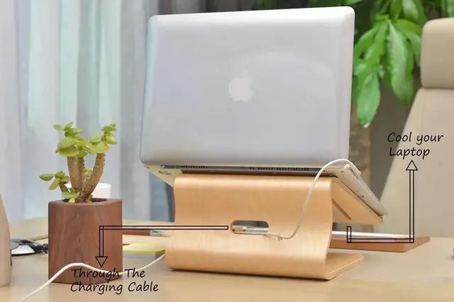 Samdi Wooden Laptop Stand, Ventilated Tilt Elevator Laptop Mounts With Anti-Slip Design For Notebook PC Air Macbook Pro iMac And Other Laptop Size 12-17 Inch (White Birch)