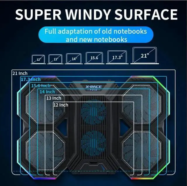 Laptop Cooling Pad RGB Cooler Laptop Stand with 6 Quiet Cooling Fans 6 Height Adjustable Cooling Pad for Laptop 11-17inch