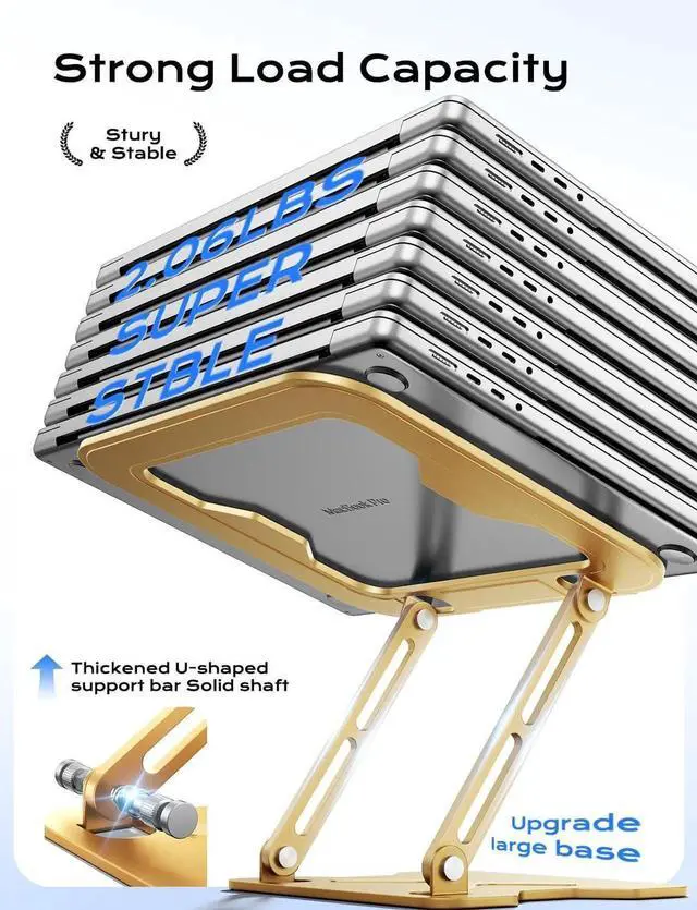 JCZT Adjustable Laptop Stand for Desk, Metal Foldable Laptop Riser, Portable Laptop Holder Mount, Ventilated Cooling Computer Notebook Stand for MacBook Air Pro, All 10-16'' Notebooks Laptops, Gold