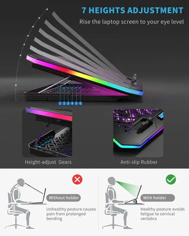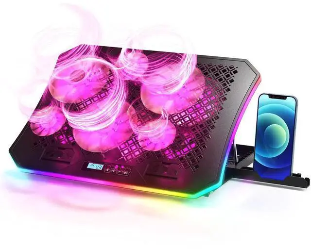 Laptop Cooling Pad, KeiBn RGB Laptop Cooler for 15.6 - 17.3 Inch Laptops, with 10 Modes Lights ^^ 6 Fans ^^ 7 Height Stands ^^ 2 USB Ports ^^ Desk or Lap Use (A8/Purple)