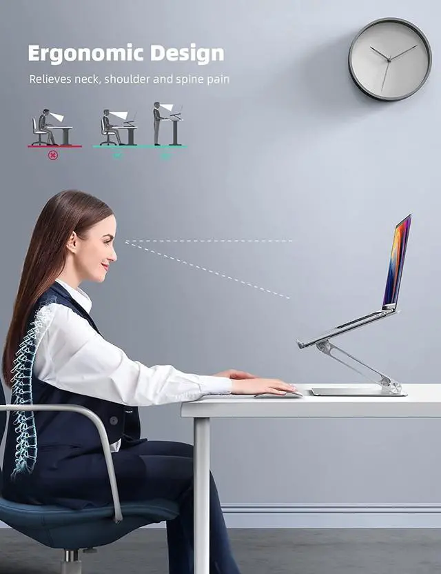 Ergonomic Design: The MacBook air pro stand holder works as a raiser to elevate the laptop screen to your eye level. The office computer stand let you fix posture and relieves neck shoulder and spinal pain it's very comfortable for working at home office and outdoor make typing more easier.
