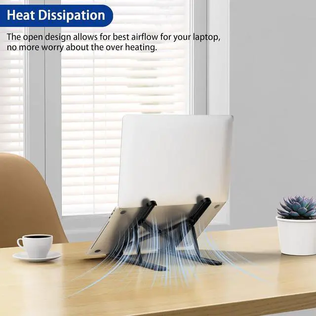Keep Laptop Cool: Ventilated laptop stand helps keep laptops running cooler. Hollow design and adjustable height increase airflow.