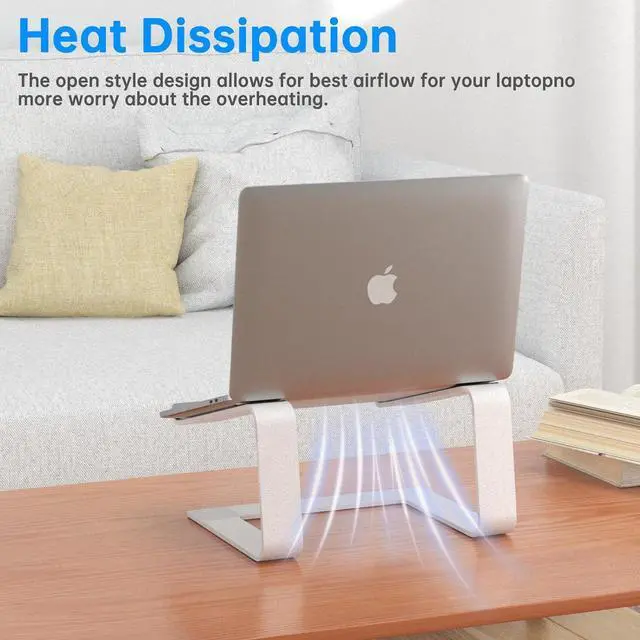 HEAT DISSIPATION: The unique U-shaped hollow structure enhances airflow dynamics effectively reducing temperatures in the laptop's core regions to prevent overheating damage to critical electronic components. Additionally the aluminum alloy construction optimizes thermal management by absorbing and dissipating heat ensuring sustained cooling performance of notebook for reliable operation. Lightweight High-Strength Materials & Enhanced Stability: Crafted from aerospace-grade aluminum alloy this computer stand achieves a self-weight of 1 kg while maintaining a load-bearing capacity of 5 kg fulfilling stringent portability requirements. Its optimized structural design enhances resistance to gravitational stress ensuring device stability and long-term deformation resistance during prolonged use.