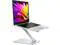 Adjustable & FoldableThe laptop stand can raise your laptop up to 7.48 inches. You can incline at different angles and stand it up higher or lower depending on your needs which will be extremely convenient if you use your laptop in a variety of position. In addition it is foldable for easy storage and easy to carry. Stable & SturdyWith quality aluminum alloy material the adjustable lecterns laptop stand is more sturdy and durable. It can support up to 8.8 lbs (4 kg) without shaking the panel. The panel and its two hooks are designed with non-slip straps to make the laptop riser more stable and 4 non-slip silicone pads at the bottom help prevent the computer riser from sliding.