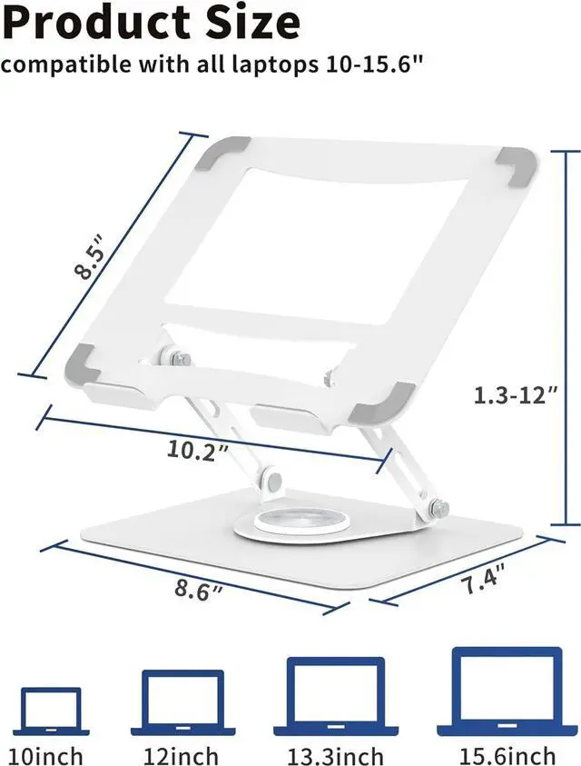 Enhanced Collaboration - The ALASHI laptop stand boasts a 360° rotatable base facilitating effortless screen sharing during group projects and collaboration sessions. Heavy and Stable - Made of high-quality metal material the laptop stands is heavier than its aluminum counterparts providing unmatched stability. Upgraded joint screws offer further stability minimizing wobbling and enhancing your work focus. Efficient Ventilation - Boasting a hollow design the ventilated notebook stand maximizes ventilation preventing your notebook from overheating and helping it function efficiently even during extended work sessions. Ergonomic Design - With adjustable height and multiple angles the computer stand promotes ergonomic working positions relieving neck shoulder and eye strain.