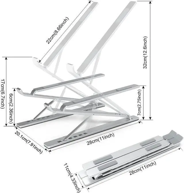 9 + 6 Height Choices 2.75 to 12.6 (7CM to 32CM) Effectively Maintain the Best Visual Level Prevent long-term Cervical Spine BendingProduct non-slip design equipped with silicone pads in multiple places. Please use it with keyboard and mouse for better resultsFit: Travel Home Office Outdoor Cafe Restaurant etc.