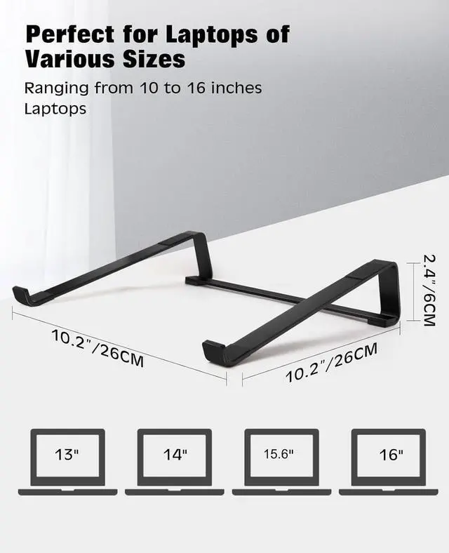 Laptop: Unleash universal compatibility with our laptop stand! Crafted to accommodate laptops of various brands and sizes ranging from 13 to 15.6 inches. Your laptop's perfect fit awaits with our versatile solution. Compatibility with Macbook air Pro/HP zbook/ / thinkpad/ surface////Msi/Alienware etc.