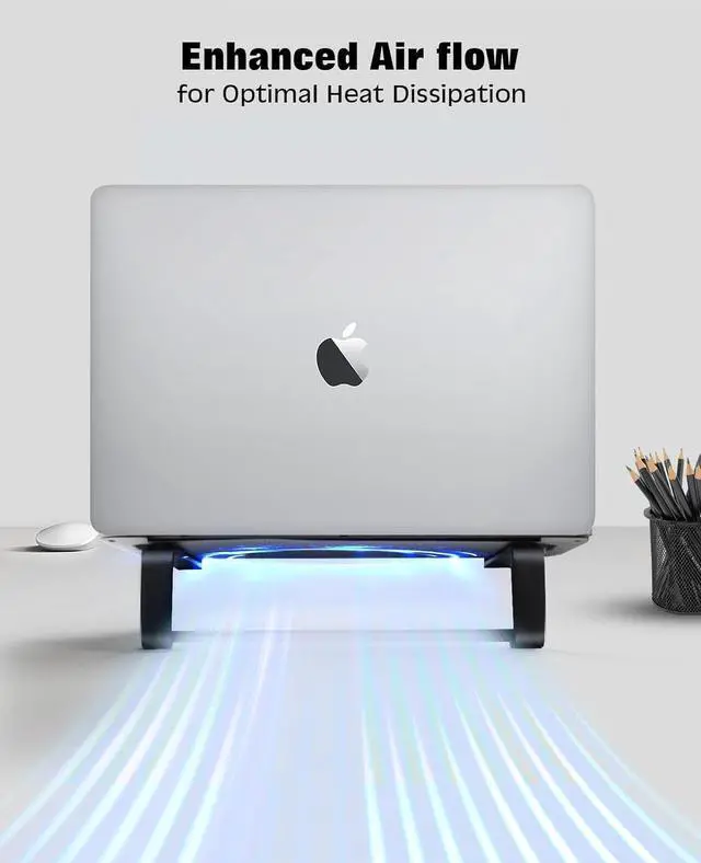 Rise laptop to comfortable height: Experience ergonomic excellence with our thoughtfully designed laptop ventilation stand. Elevate your laptop to the perfect height and angle for comfortable typing and optimal viewing. Say goodbye to neck and shoulder pain as you work or watch thanks to our carefully crafted solution. Laptop stand black for macbook air / DJ/Gaming/Work Form Home4.