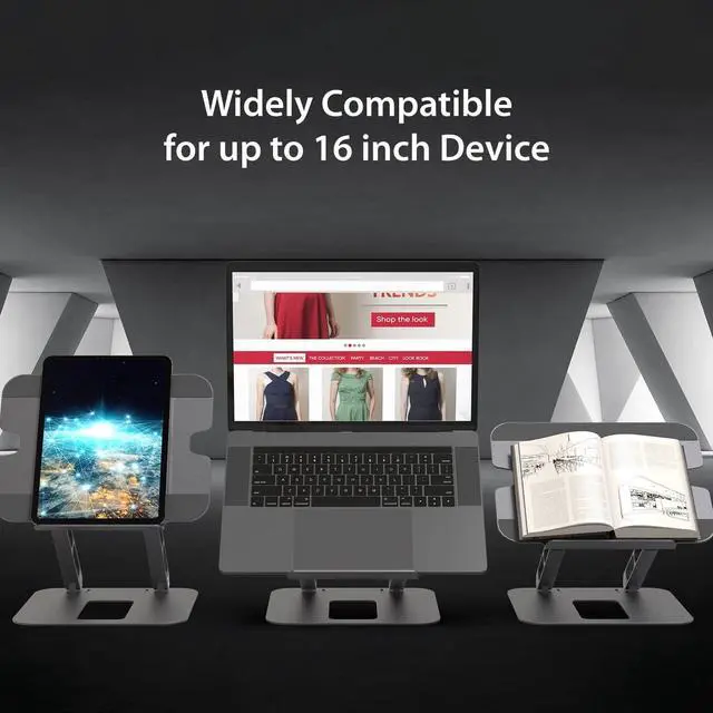 Made with durable aluminum this multi-angle stand can support a variety of items including a laptop tablet book etc. Its convenient foldable design makes storage and transport easy in addition to giving you the ability to adjust the viewing angle and height to fit your needs. This versatile stand gives you the ability to create a more efficient workspace whether you need extra space or a standing desk setup. Nonslip protective pads help prevent slipping and scratchesFits most laptops up to 16 in.