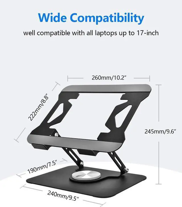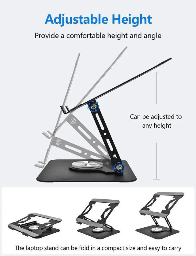 ?????? °???????????????? Laptop stand featured with a 360°rotatable axis connecting with the base it could easily share your screen with someone sitting across the room or at another desk as well works great for ideas sessions when collaborating with others over video chat or calls.???????????????? &???????????????? This laptop stand for desk easily lifts your laptop to a higher level elevates your laptop to your eye level fully foldable and may be used as laptop standing desk accessories for office podium pulpit stand laptop desk riser laptop desk stand desktop stand foldable computer desk ergonomic stand.
