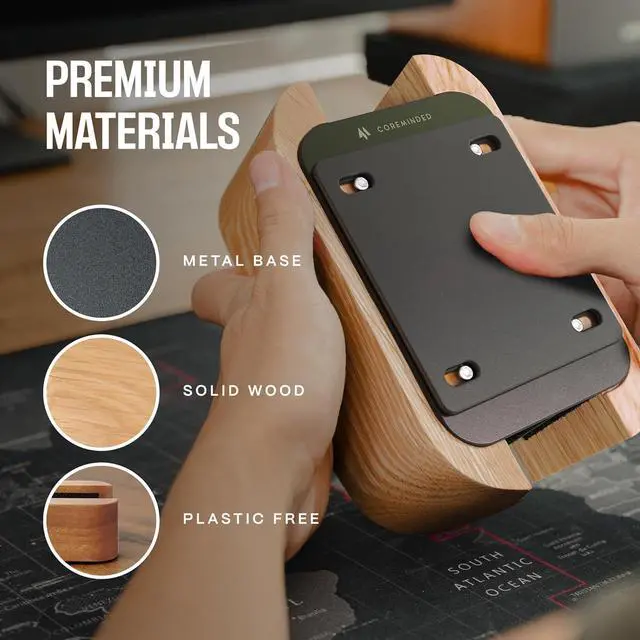 AESTHETIC ELEGANCE - Elevate your workspace and save desk space with our exquisite laptop vertical stand. Crafted from solid wood and premium weighted metal base it adds style to your home office. DURABLE & STABLE - Crafted from solid wood and durable metal the macbook holder ensures long-lasting sturdiness and strength. Its anti-skid silicone layer ensures a secure grip on any desk surface. ADJUSTABLE & USER-FRIENDLY - Our laptop holder vertical is fully adjustable to accommodate laptops between 0.5 - 1.5 in thickness providing a perfect and secure fit. Customize it to your needs in seconds.