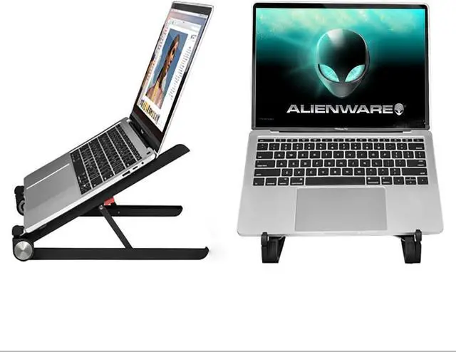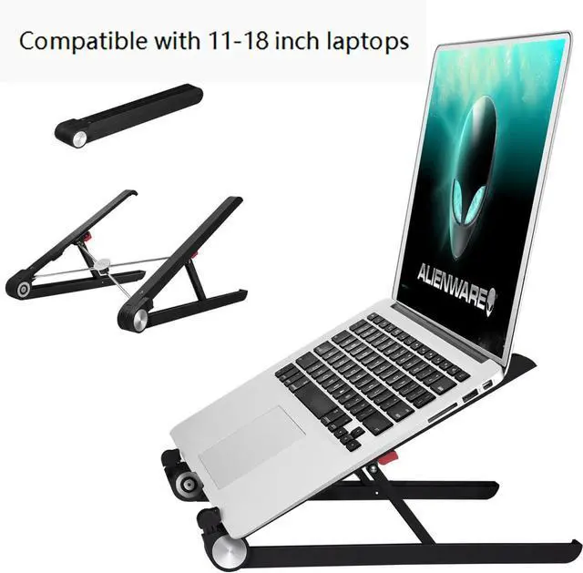 4. Ultra-Portable & Travel-Friendly Weighs just 0.6 lbs (272g) lighter than most water bottles! Folds flat in secondsfits in backpacks for LAN parties work trips or coffee shop sessions. 5. Premium Matte Black Finish Oxidized spray-coated surfaceresists fingerprints and scratches No cheap plasticMore noble than a regular laptop stand elevates your battlestations aesthetics.?