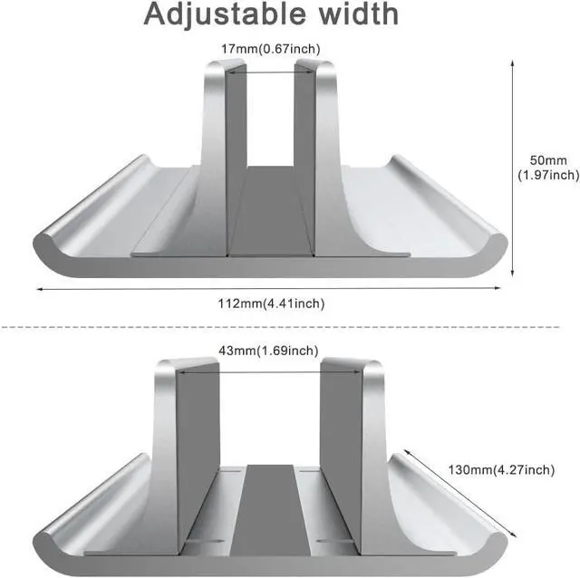 Adjustable Size for a Perfect Fit - This stand is designed to accommodate laptops with a thickness ranging from 0.55 inches to 1.69 inches. Simply tighten the screw to adjust the size ensuring a perfect and secure fit for your device. Space-Saving & Elegant Design - With its compact and sleek design this stand saves valuable desk space while enhancing your workspaces aesthetics. The anodized aluminum finish complements modern desk styles adding a touch of professionalism and sophistication to your setup. Package & Customer Support - The package includes 1 vertical laptop stand and 1 Allen key for easy adjustments.