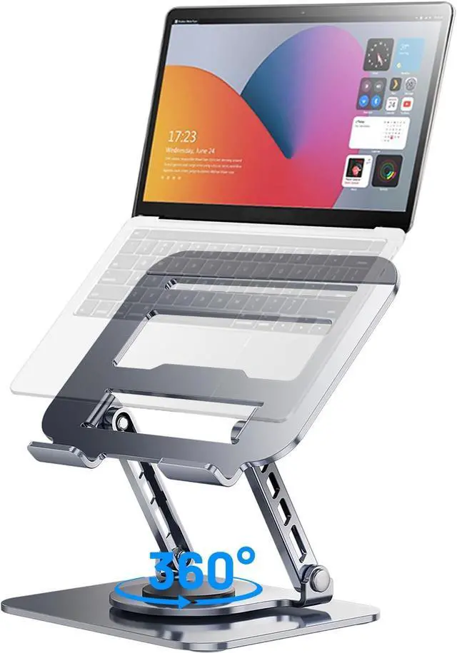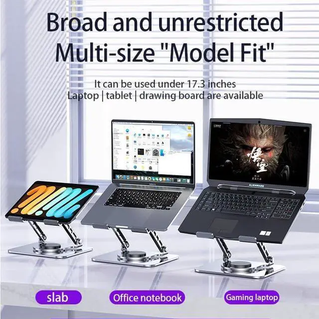 Wide Compatibility: The laptop stand for desk is compatible with all laptops Compatible with laptops ipads and tablets up to 21 inches including popular models like ipad tablet MacBook MacBook Air MacBook Pro Surface Laptop XPS Google Pixelbook HP Chromebook Alienware etcAdjustable and portable designThe laptop riser can be easily adjusted to comfortable height and angle based on your actual need. Besides you also can fold the laptop stand up to carry around for travel and business trips or store it in your laptop bagUpgraded version of the large base bracket: the use of thick transverse rod carbon refined steel boom 10 times stable the heavier the more stable. The new double cross bar the force is more balanced greatly improving the stability of the notebook stand. Typing games do not shake or shakeErgonomic