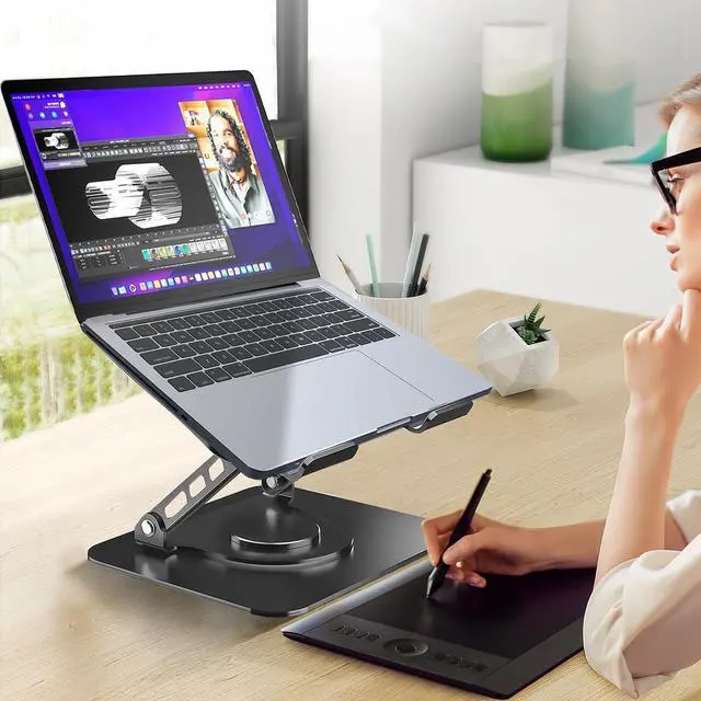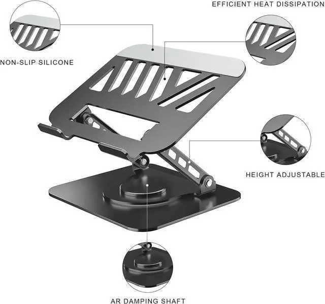 360 Degree Rotation: This laptop desk stand can rotates on its centered round base allowing the top half of the stand to rotate infinitely in either direction. This give you plenty of flexibility in terms of working position. It will be especially useful for group projects or meetings. Ergonomic & High