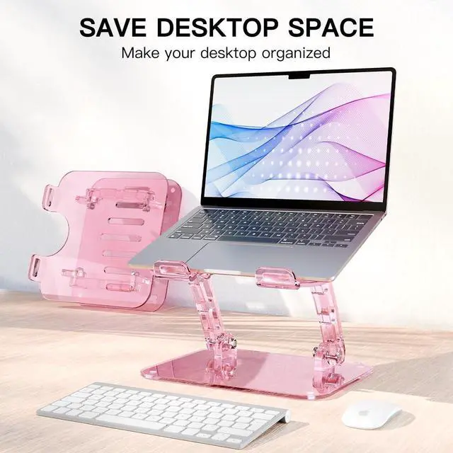 Perfect heat dissipationThe bottom hollow out design can enhance ventilation and airflow effectively cool the laptop prevent overheating and extend the lifespan of the laptop. Folding designThe folded thickness is 1.77 inches (approximately 4.5 cm)The clear laptop riser is lightweight and portable. It can be easily folded and placed in your bag. Carrying it out is very convenient and suitable for offices conference rooms libraries cafes and storing laptops. Widely compatibleOur laptop stand is compatible with 10- 17.3 inch laptops compatible with MacBook Air/Pro Google Pixelbook XPS HP ThinkPad Chromebook Surface and iPad. It is also very easy to assemble making it an excellent gift choice for family and friends.