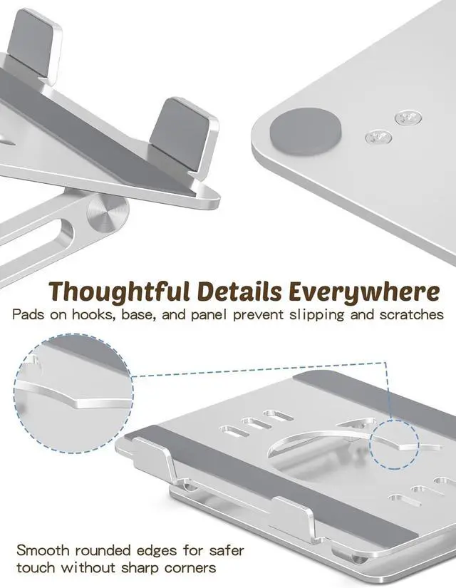 Steady Support: Made of premium aluminum alloy this macbook holder has a larger base that easily handles heavier laptops without shaking or sliding. Feel confident typing drawing or presentingyour device stays exactly where you put itStay