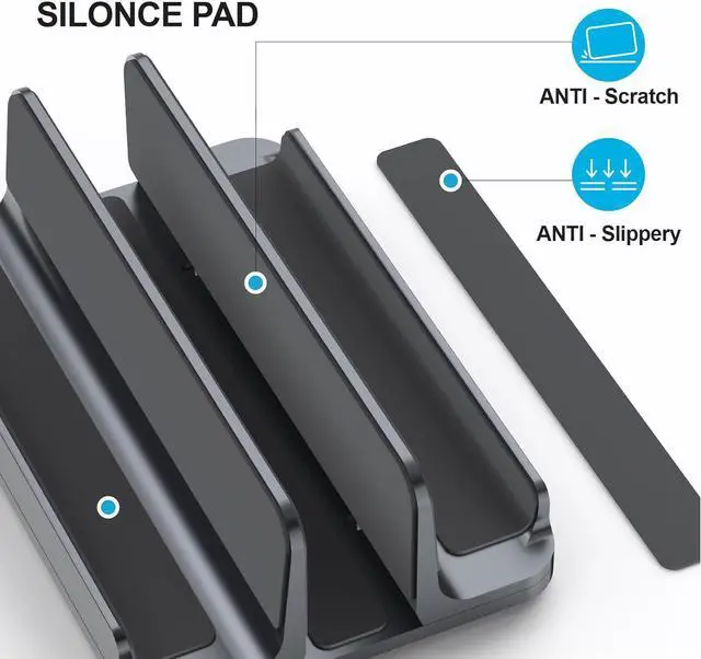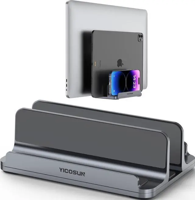 Triple-Slot Design: Vertical stand features 3 slots allowing you to store both a laptop and a tablet and a phone simultaneously making it a space-saving solution for your desk.