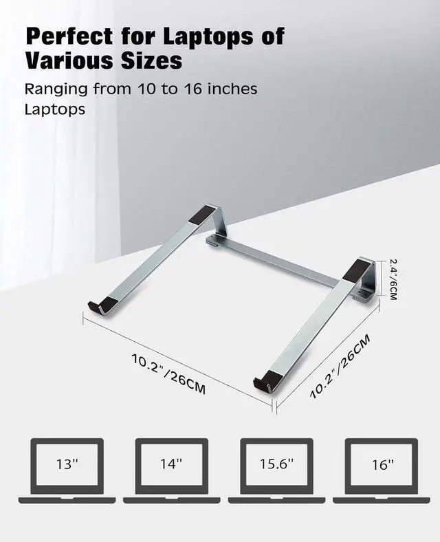 Laptop: Unleash universal compatibility with our laptop stand! Crafted to accommodate laptops of various brands and sizes ranging from 13 to 15.6 inches. Your laptop's perfect fit awaits with our versatile solution. Compatibility with Macbook air Pro/HP zbook/ / thinkpad/ surface////Msi/Alienware etc.