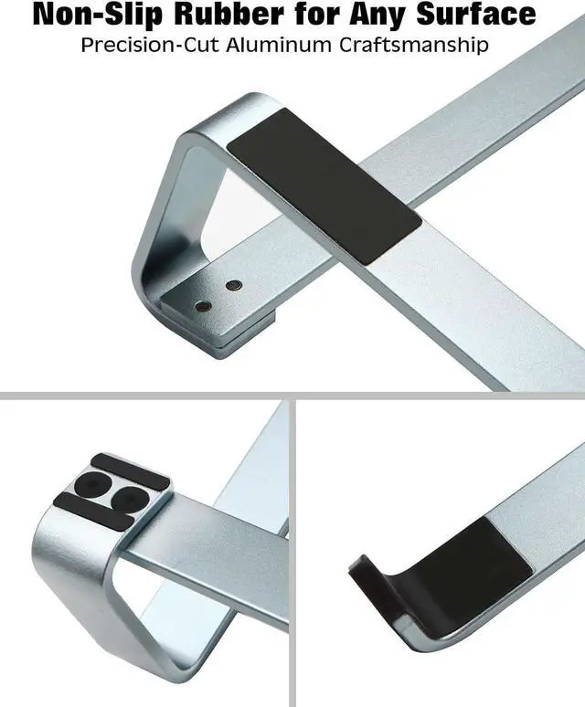 Sturdy Aluminum Alloy Laptop Stand: StDiscover the essence of simplicity and strength with our laptop stand. Meticulously crafted from robust aluminum alloy it ensures unwavering durability while maintaining an elegant minimalist design. Office essential! Elevate your laptop experience with our tilted ventilated stand compatible with laptops up to 17/ 17.3 inches. 2.