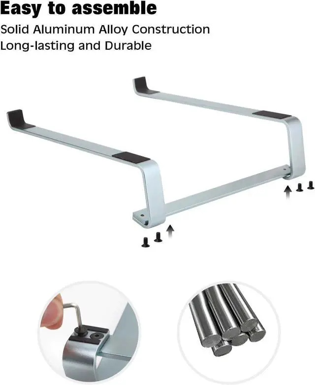 Easy to assemble: Effortless assembly awaits! Our laptop stand is designed for quick and easy setup. Say goodbye to complicated instructions within moments you'll have the perfect ergonomic solution ready to enhance your workspace. Ventilation metal laptop stand stand is equipped with soft rubber pads to protect your desk and laptop from scratches while providing a stable typing experience that reduces vibrations and enhances office efficiency. 3.