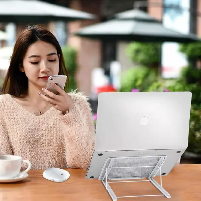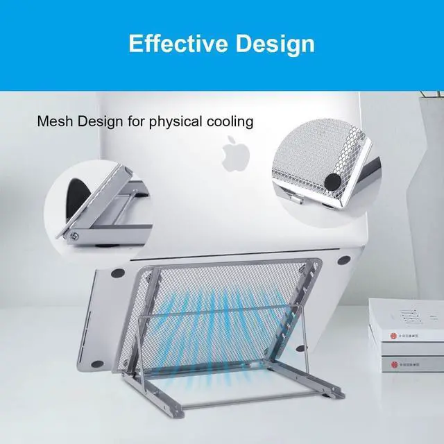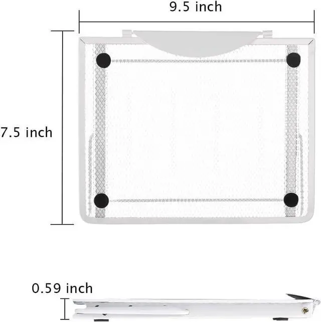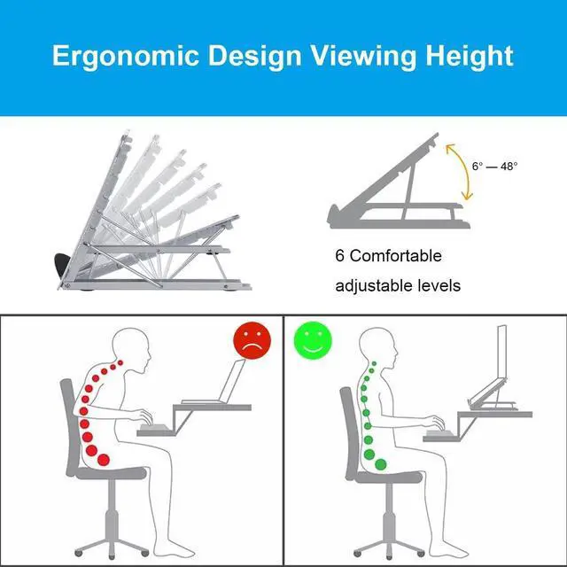 Broad Compatibility- This Portable Laptop Stand is compatible with laptop (10 inch-16 inch) / Tablet /sketch board / MacBook iMac iPad Surface Pr ThinkPad Hp and more. 6 Comfortable adjustable level- Adjustable laptop stand can lift the laptop to your eye level from 26 to 30 degrees and optimize your posture to get rid of wrist finger & arm fatigue. Skidding Prevented- Anti-Slip feet keep your laptop and light box in place and protects any surface it is placed on. Avoid unnecessary skidding in the course of drawing typing reading. Strong Heat Dissipation- Mesh metal Ventilated laptop stand helps to keep your laptops/light box running cooler to help prevent hardware damag sturdy laptop holder can support weight 25lbs.