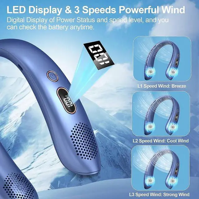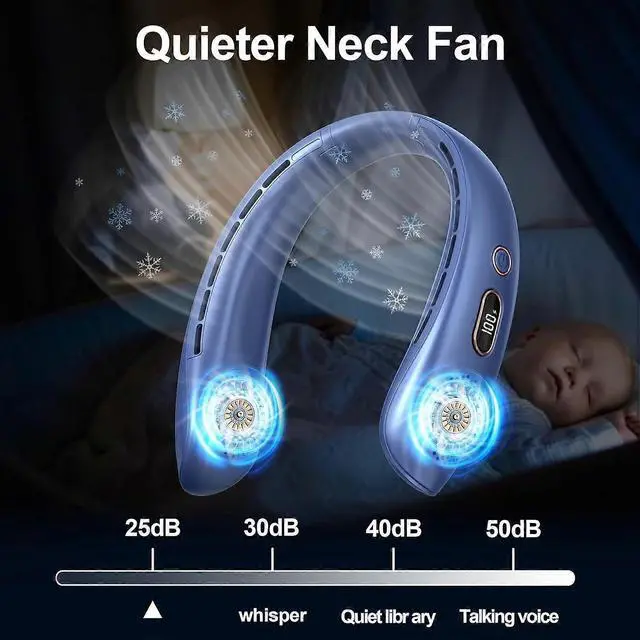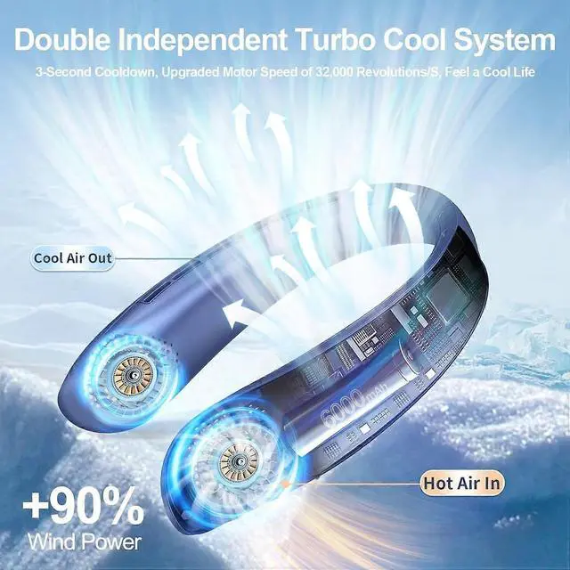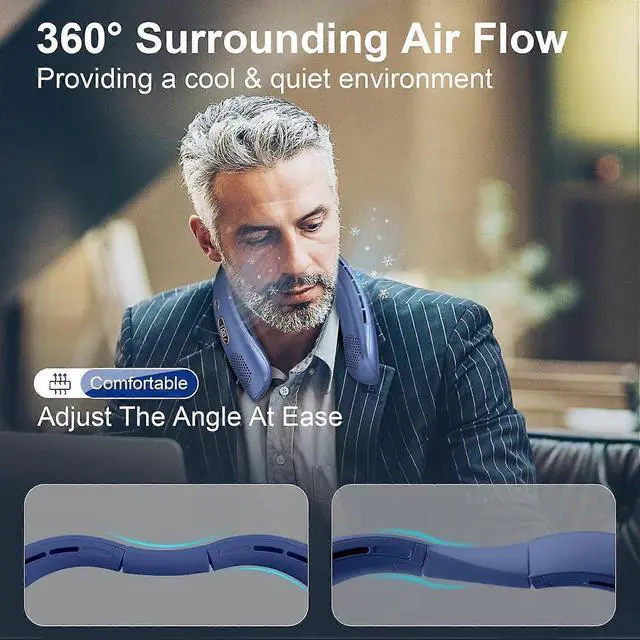 Stay cool anywhere with this advanced bladeless neck fan featuring 360° airflow and ultra-quiet operation under 35dB. Perfect for outdoor activities, office use, and travel.