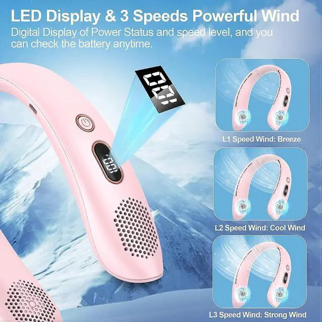 Stay cool anywhere with our lightweight, hands-free bladeless neck fan. Perfect for travel, office, and outdoor activities, this fan delivers safe, efficient cooling without the risk of pinched hair or fingers.