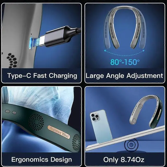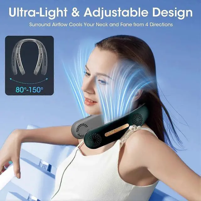 Stay cool hands-free with the Neck Fan 4 Turbo, featuring a powerful 4000mAh battery for 4-18 hours of runtime and ultra-quiet 25dB operation.