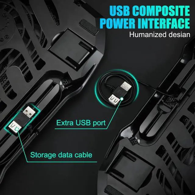 Unique USB Port Design & Storage The laptop cooling pad includes a USB composite power interface; one USB port powers the laptop while the other is available for other devices. It also has a hidden storage design in the back for the USB cable.