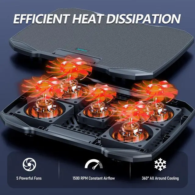 Professional Gaming Laptop Cooling PadThis laptop fan cooling pad features five strong fans and a honeycomb style metal plate, providing 360 degrees all-round dynamic cooling, keeping your laptop running cool even under heavy load.