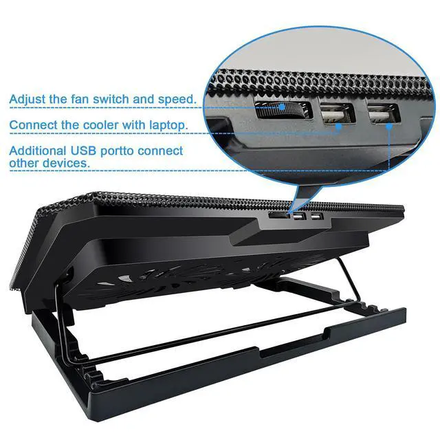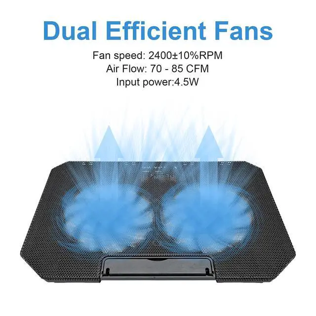Dual Efficient FansThe laptop cooling fan features dual efficient fans that create a noise-free environment, with sound levels as low as 15 decibels. You'll hardly notice they're on!