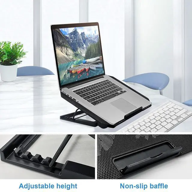 Ergonomic DesignThis cooling pad functions as an ergonomic stand, offering four adjustable height settings to accommodate various needs while working or gaming. It also comes with a detachable non-slip baffle to effectively prevent the laptop from slipping off.