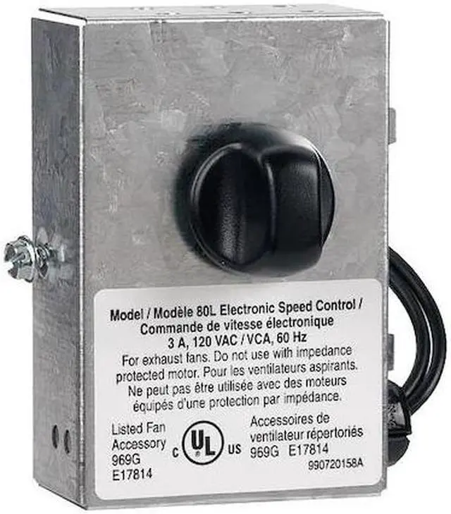 Speed Control, Switch Type Dial, Input Voltage 120V AC, Maximum Input Current 3 A, Reversible Not Reversible, Plate Color Silver, Switch Color Black, Primary Voltage 120V AC, Includes Control Knob, Switch Plate, Standards UL Listed, Product Type Speed Control. This item has been restricted from sale in the following state (s): []