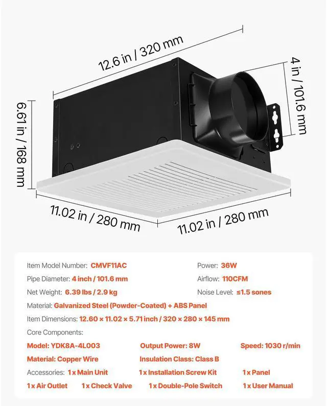 Material: Galvanized Steel (Powder-Coated) + ABS Panel